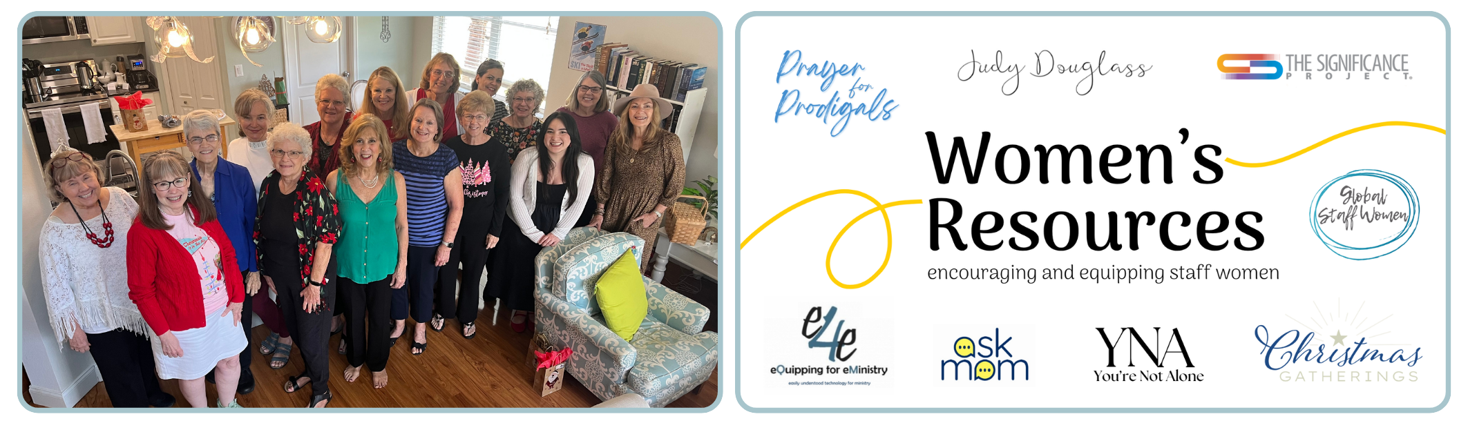 It is a group of women serving our U.S. and global staff women (and some men as well). This banner gives you an idea of the ways we encourage and support our staff. I will try to introduce you to these different ministries.